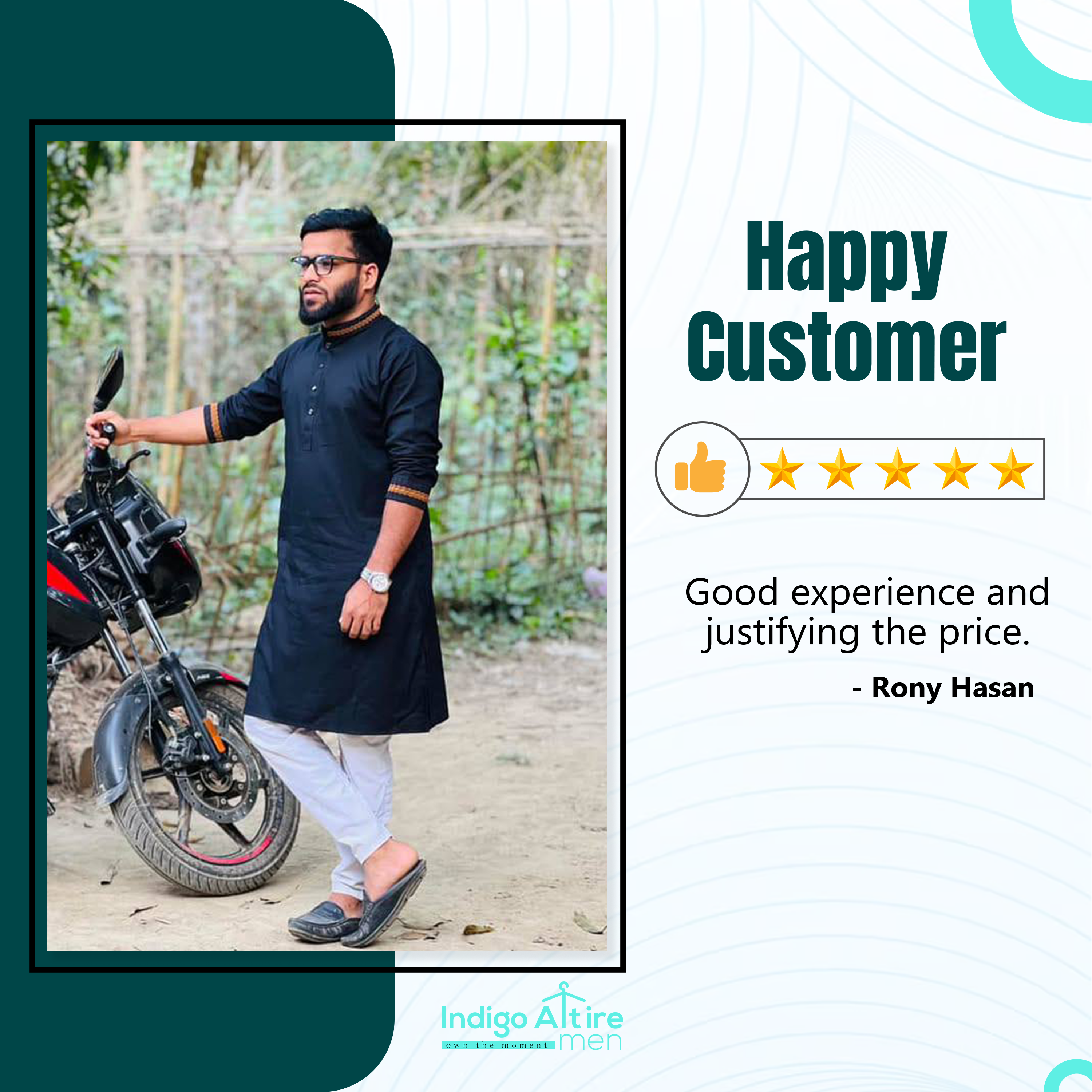 ব্ল্যাক কালার প্রিমিয়াম মাইক্রোস্টিজ সলিড পাঞ্জাবি