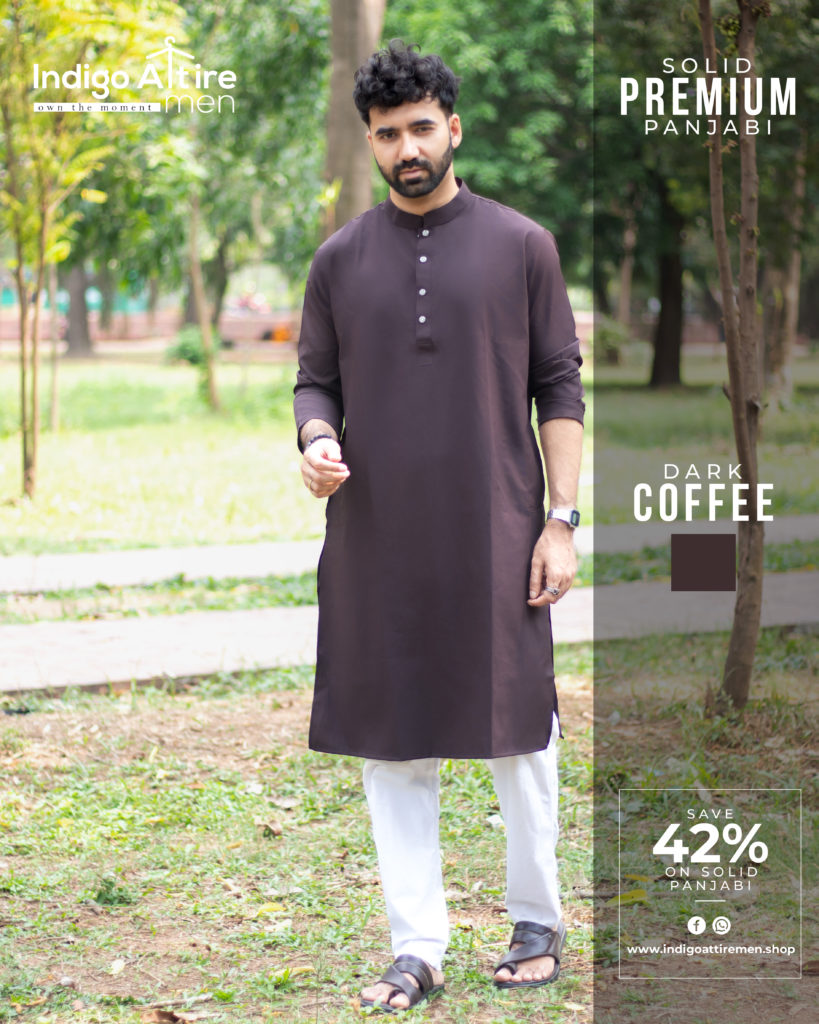 কফি কালার প্রিমিয়াম মাইক্রোস্টিজ সলিড পাঞ্জাবি
