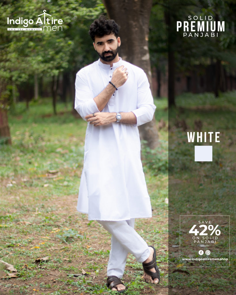 সাদা কালার প্রিমিয়াম মাইক্রোস্টিজ সলিড পাঞ্জাবি