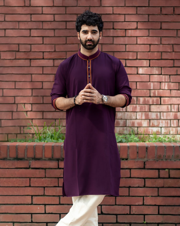 পার্পেল কালার মাইক্রোস্টিজ এমব্রয়ডারি লাক্সারি পাঞ্জাবি