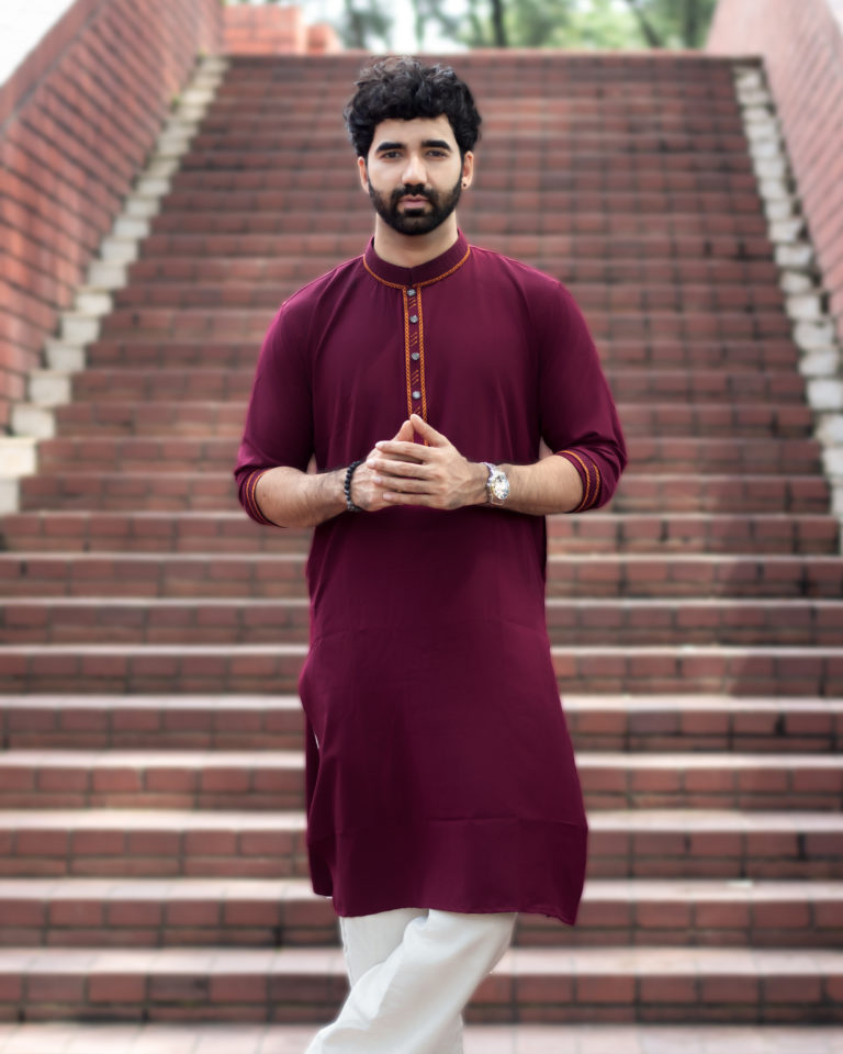 মেরুন কালার মাইক্রোস্টিজ এমব্রয়ডারি লাক্সারি পাঞ্জাবি