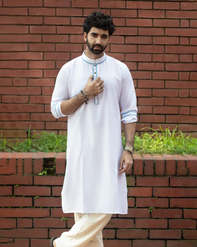 সাদা কালার মাইক্রোস্টিজ এমব্রয়ডারি লাক্সারি পাঞ্জাবি